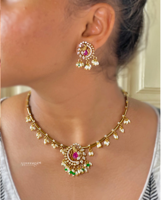 Splendid Peacock Necklace with Rice Pearl