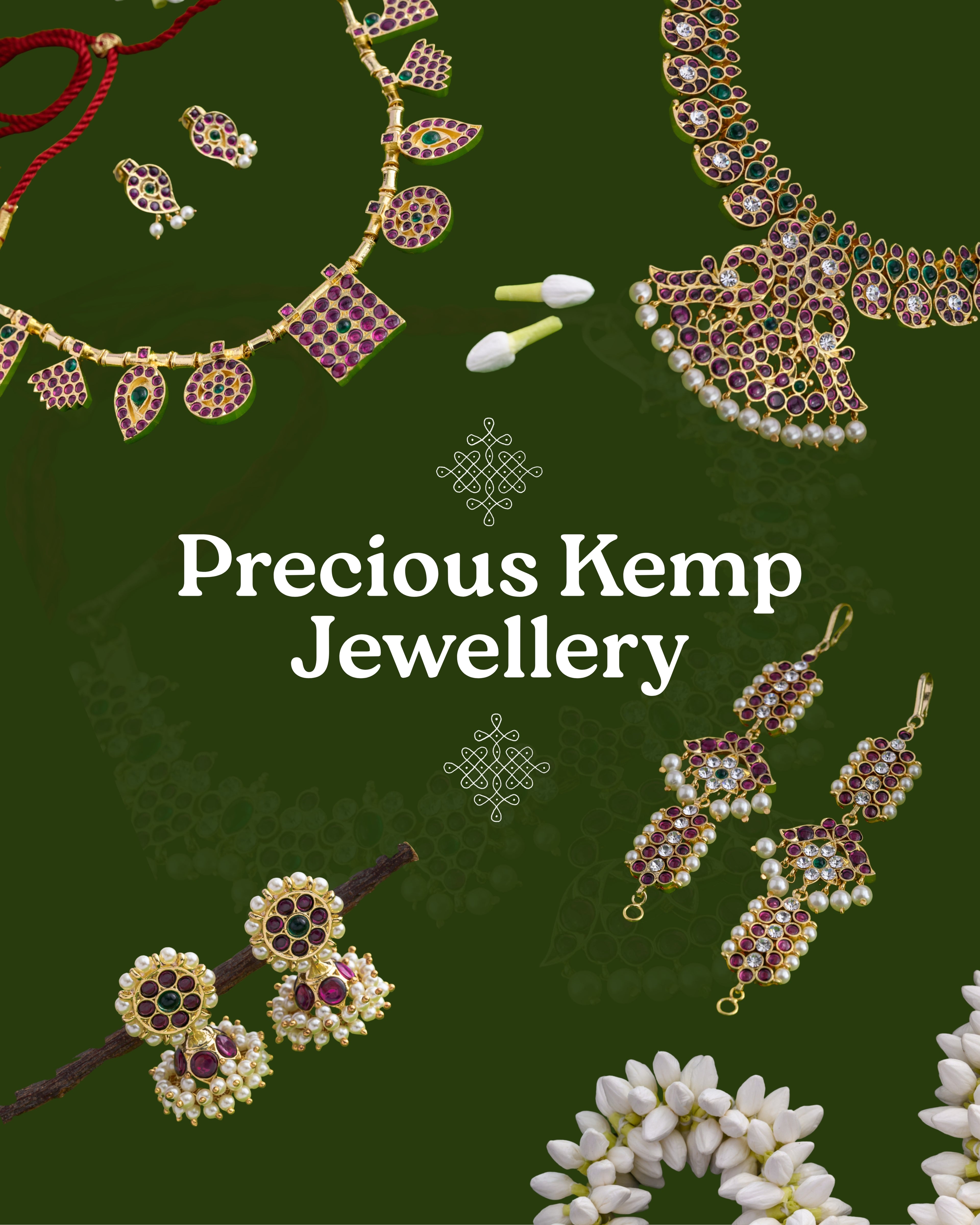 Traditional Kemp Stone Attigai - Ruby & Green