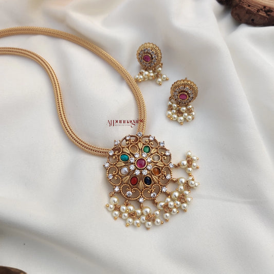 Beautiful Floral Navaratna Pendant Chain