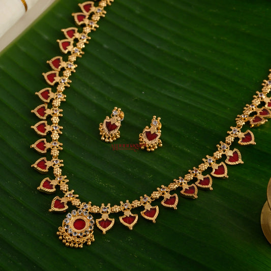 Classy Floral Kemp Pendant Chain - Ruby With Green