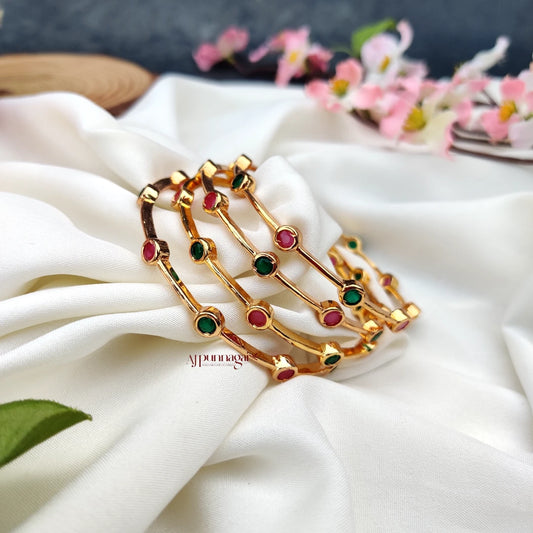 Classic Pink and Green Stone Bangle - set of 4