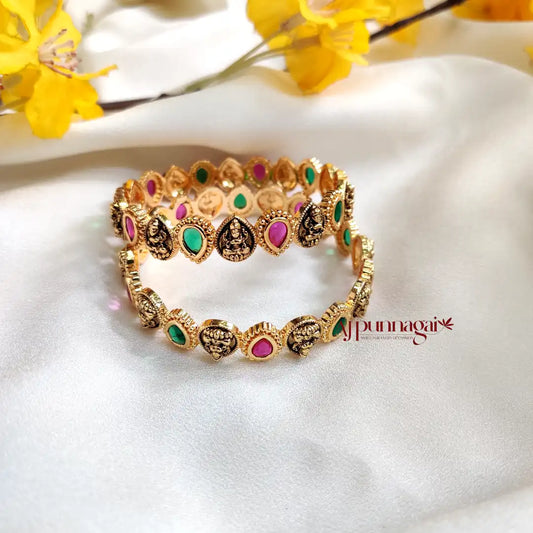 Sparkling AD Lakshmi Coin Gold Finish Bangle