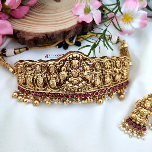 Stunning and vintage look Lakshmi Nakshi Design High Neck Choker - Ruby