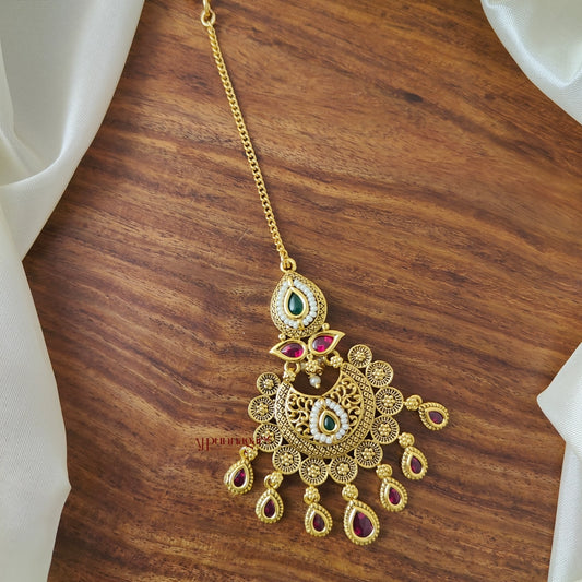 Gold Look Alike Bridal Chutti - Ruby