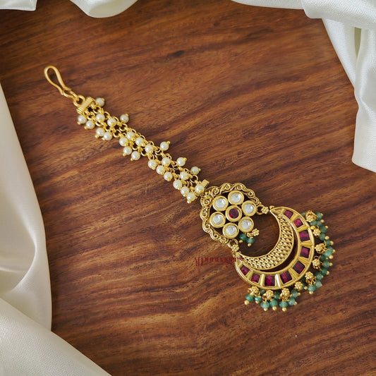 Floral Pearl Bridal Chutti - Green Beads