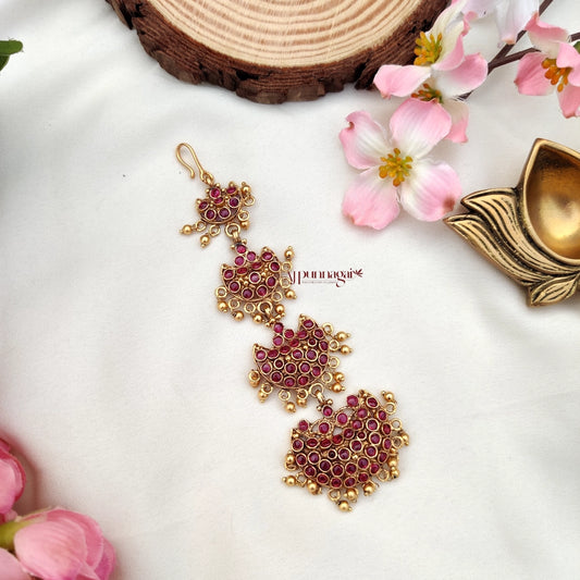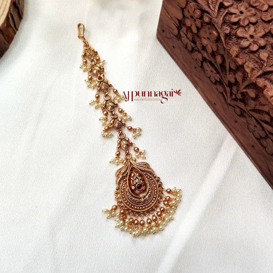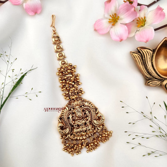 Traditioanal Lakshmi Motifs Maang Tikka with Golden Beads