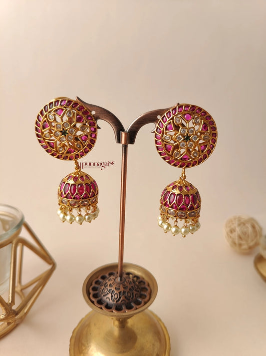 Vintage Inspired look Kemp stone Jhumka - Multi
