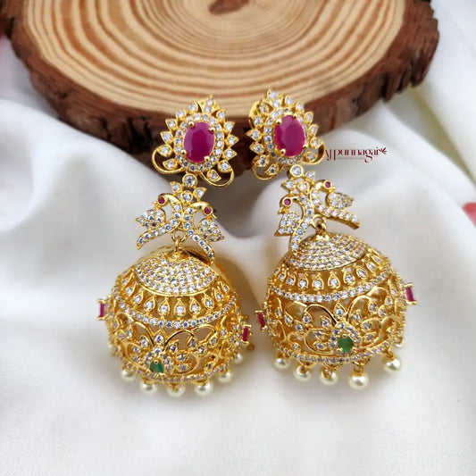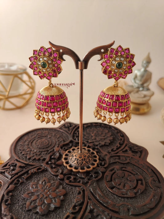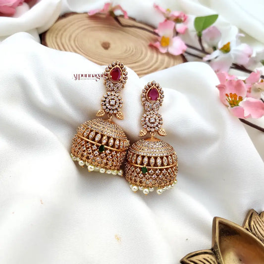 Trendy Gold finish AD stone Bridal Jhumka - Pink and Green