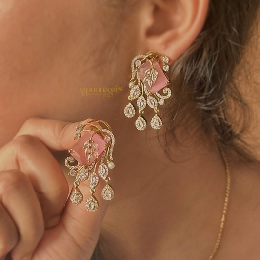 Sold outLeafy AD Stone Earring - Pastel Pink