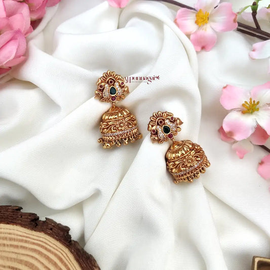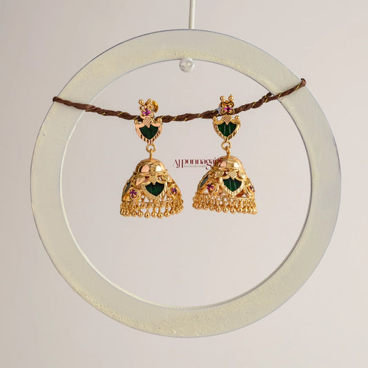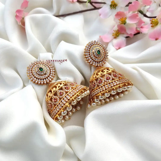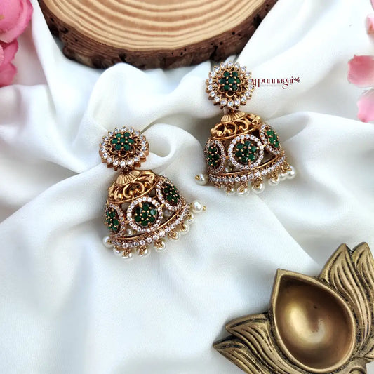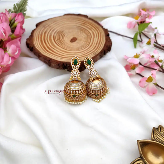 Sold outRoyal AD stone Bridal Jhumka - Green