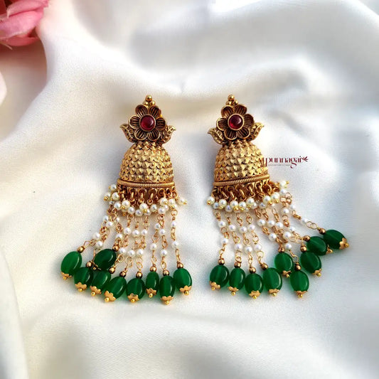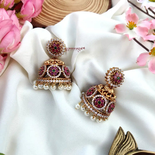Mesmerizing Grand floral Bridal Jhumka with Pearl Hangings