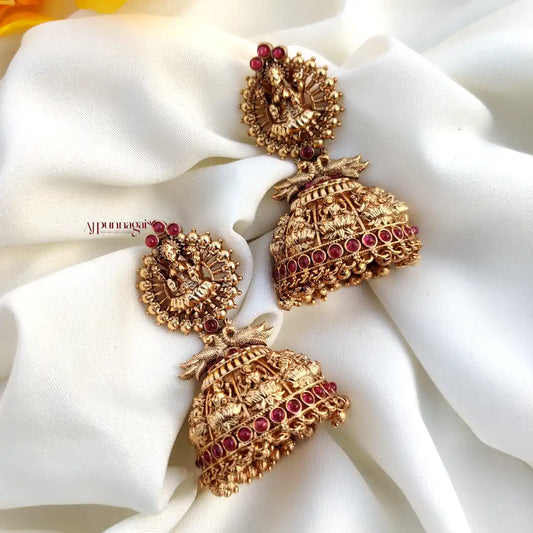 Elaborately Crafted Lakshmi Jhumka with Gold Beads - Ruby