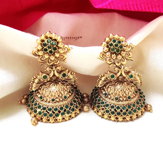 Sold outTrendy Floral Peacock Jhumka - Green