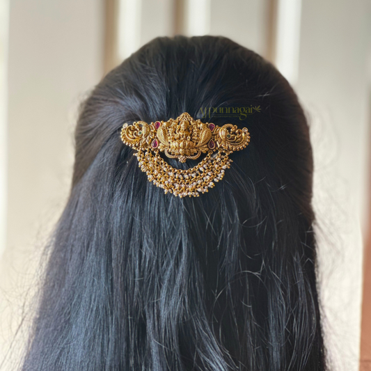 Peacock with Lakshmi Hair Clip - Pearl
