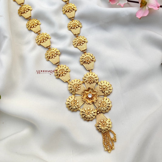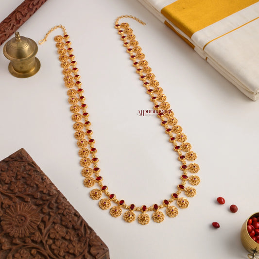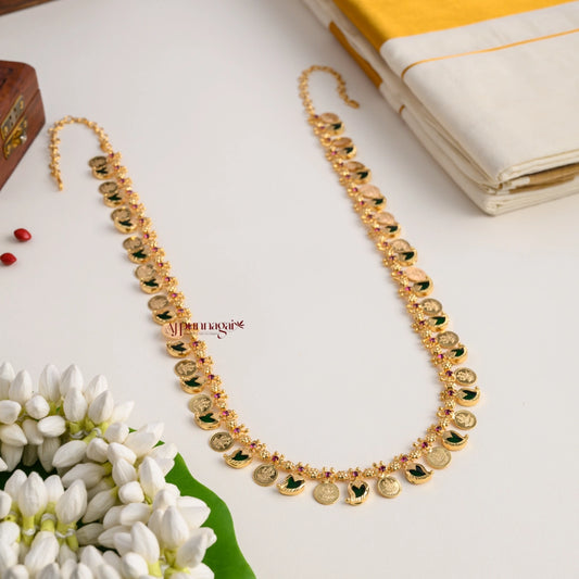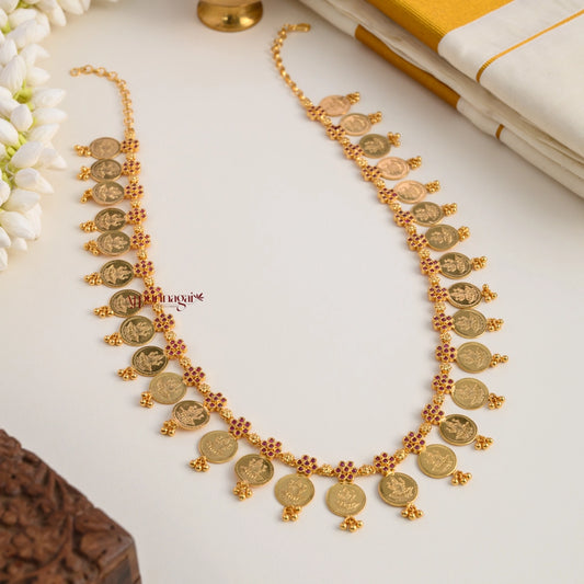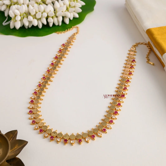 Lakshmi Coin Gold Finish Haram - Pink With White