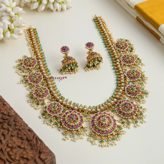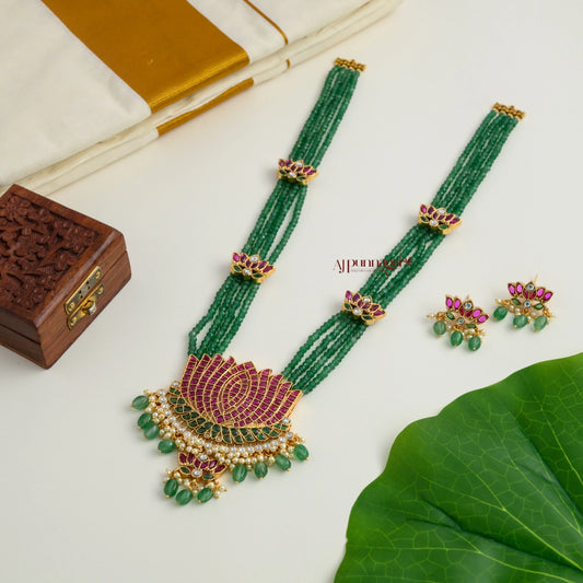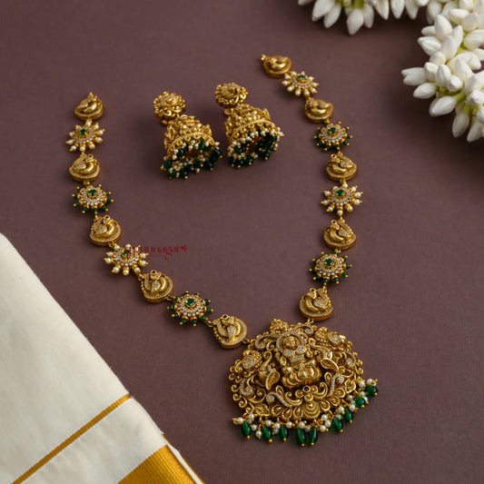 Gold Look Alike Krishna Green Beaded Bridal Haram