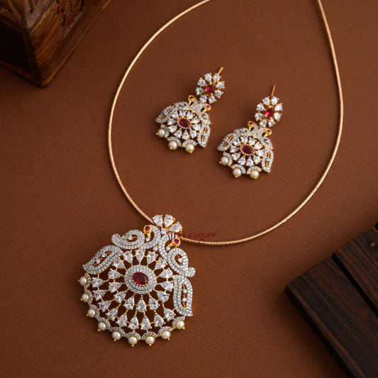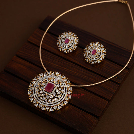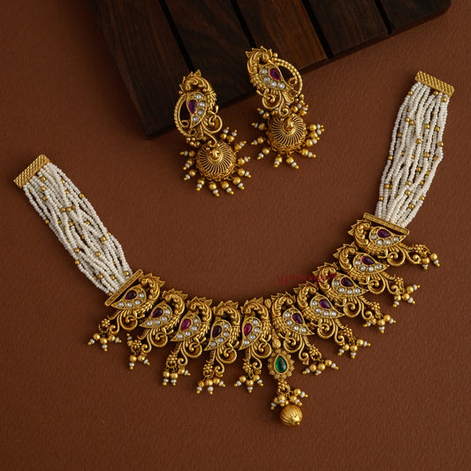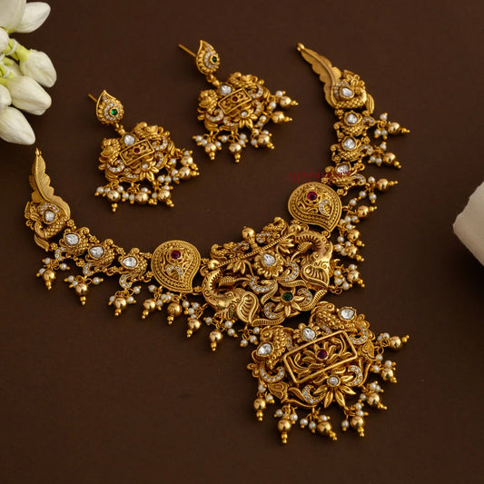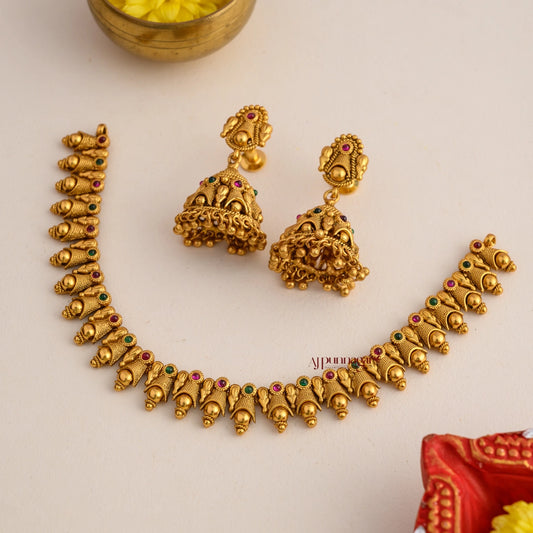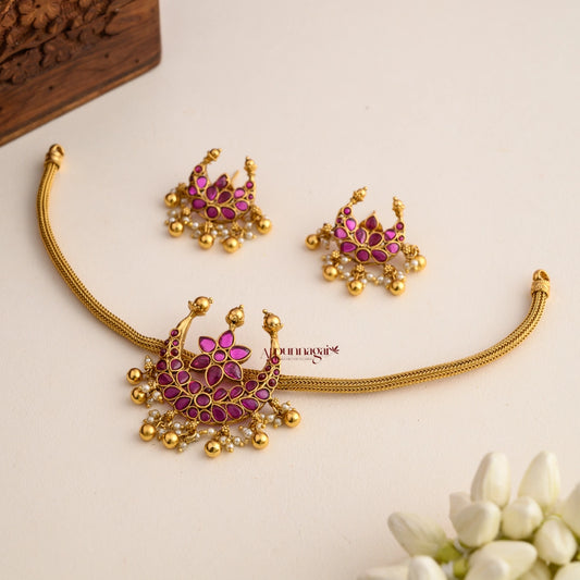 Traditional Moon Shaped Attigai Necklace - Ruby