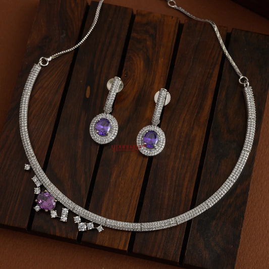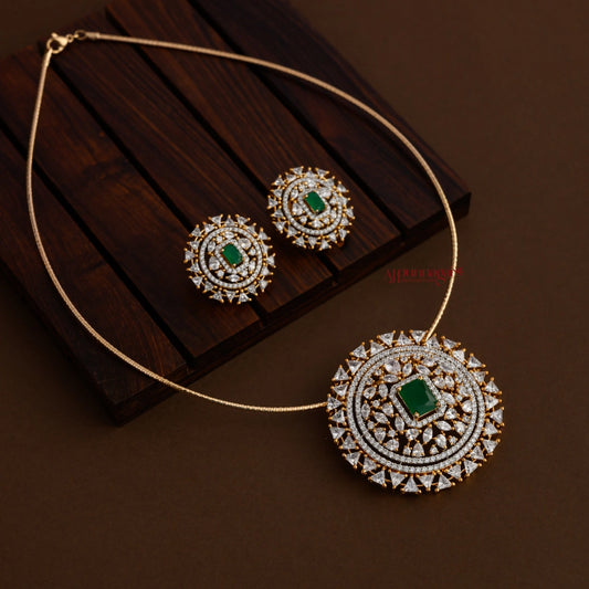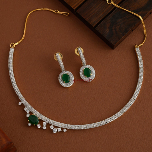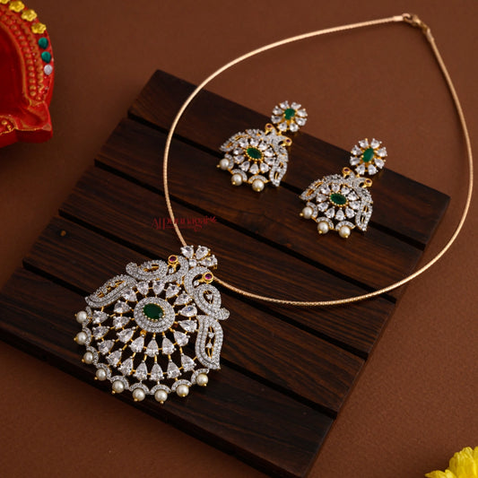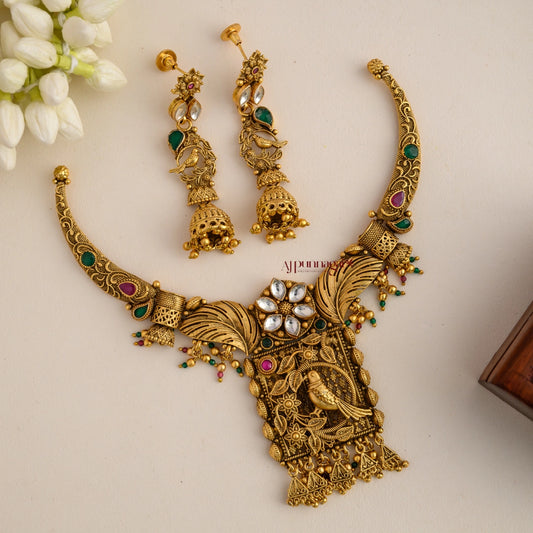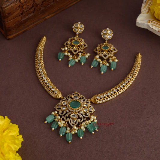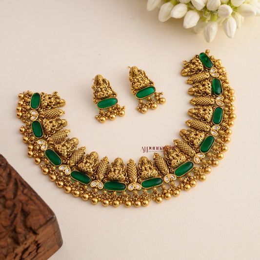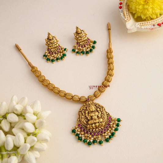 Traditional Moon Shaped Attigai Necklace - Ruby with Green