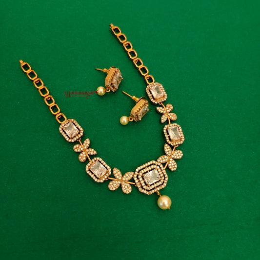 Sparkling AD stone Non Idol Matt Finish Necklace - White & Green