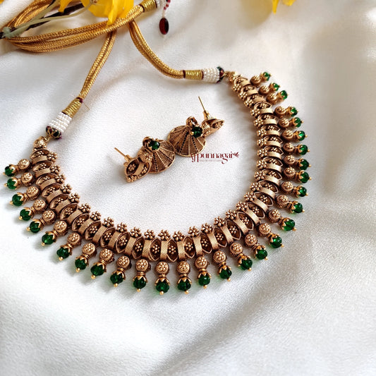Dazzling Gold Look Green Beaded necklace