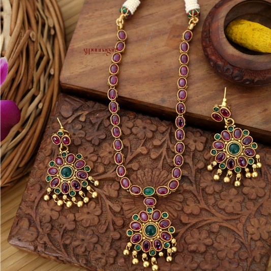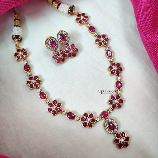 Floral Design Ruby & AD Stone Necklace