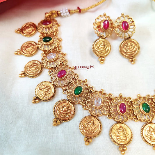 Unique Multi Stone Lakshmi Coin Necklace