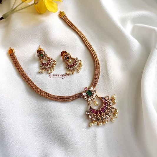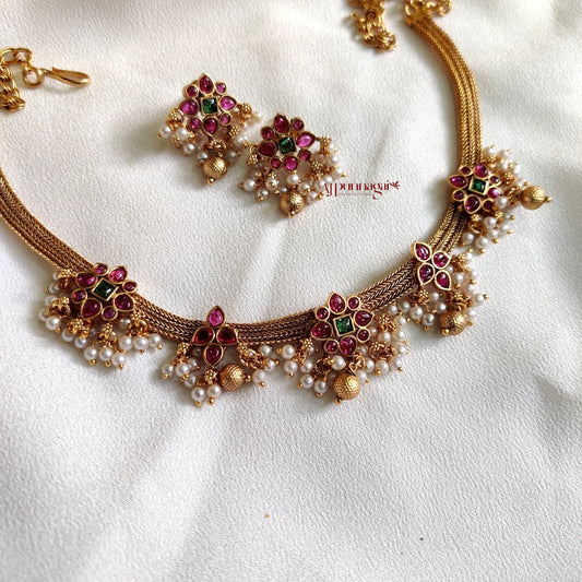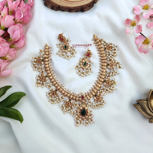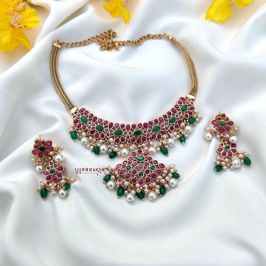 Beautiful Non Idol Kemp Stone Necklace with Pearls