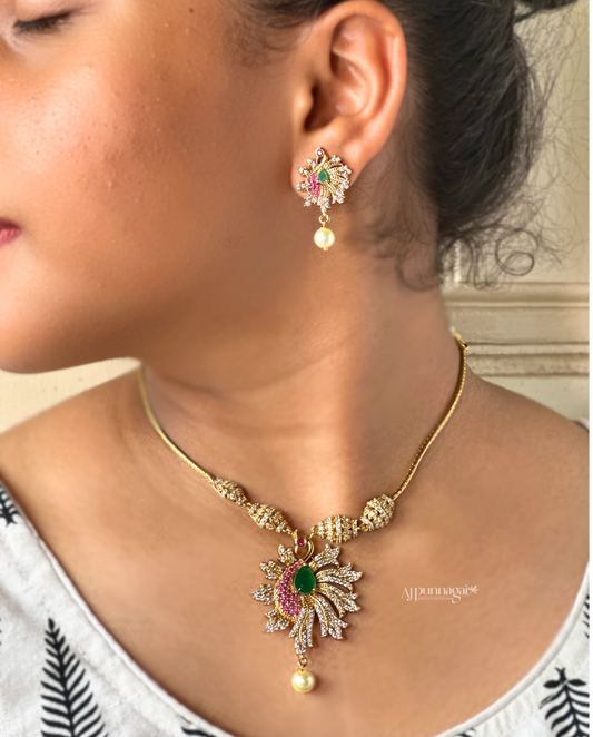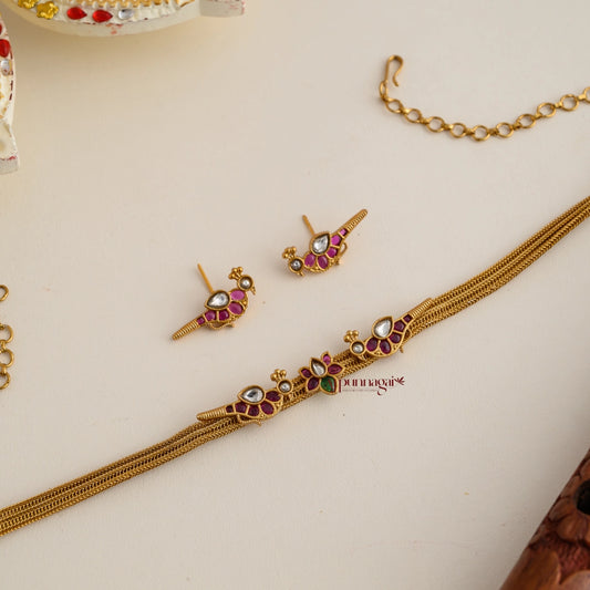 Classy Lakshmi and Peacock Guttapusalu Necklace
