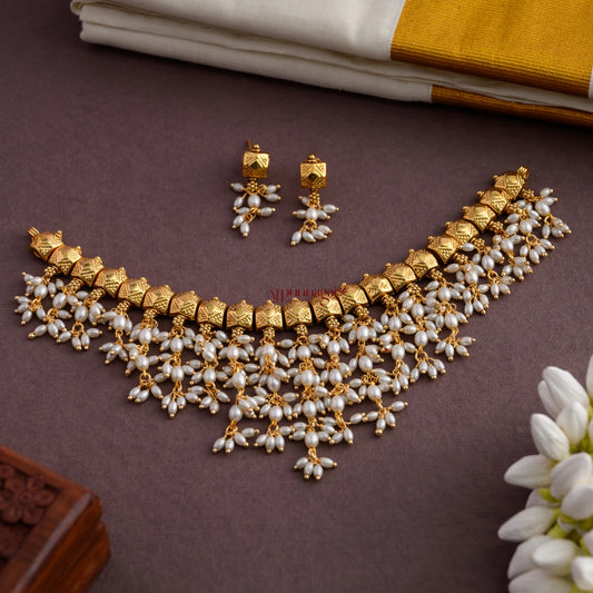 White Rice Pearl Guttapusalu Necklace
