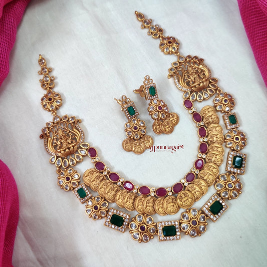 Double Layered Coin Lakshmi Necklace with AD stones