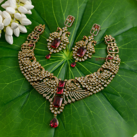 Sparkling AD Peacock Necklace - Red