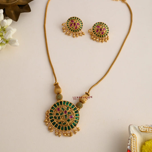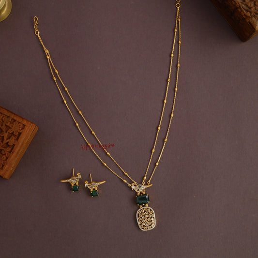 Classy Floral Kemp Pendant Chain - Green With Ruby
