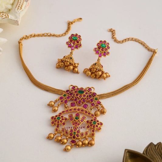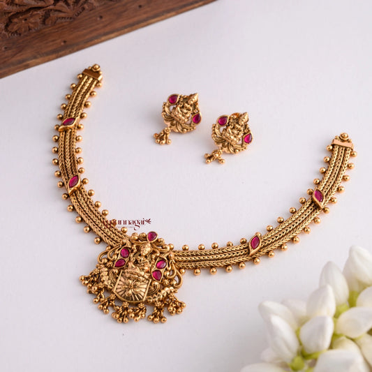 Royal Gold Look Alike Nakshi Necklace - Ruby