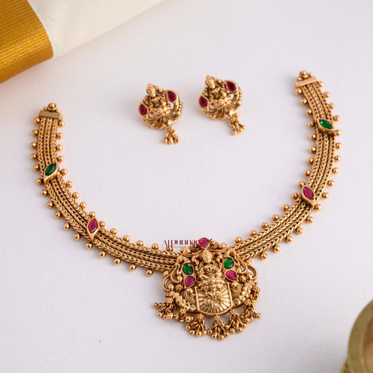 Royal Gold Look Alike Nakshi Necklace - Multi