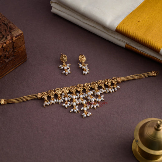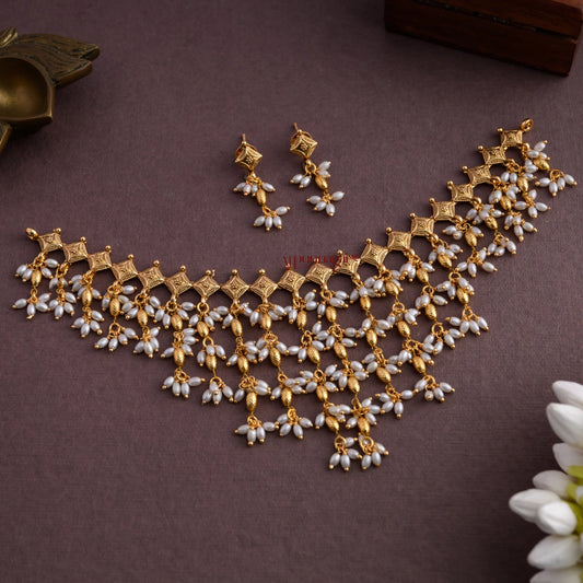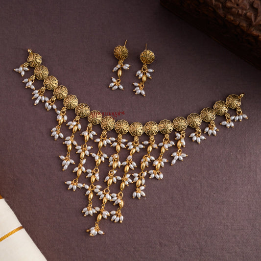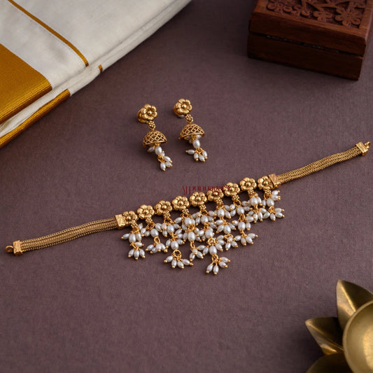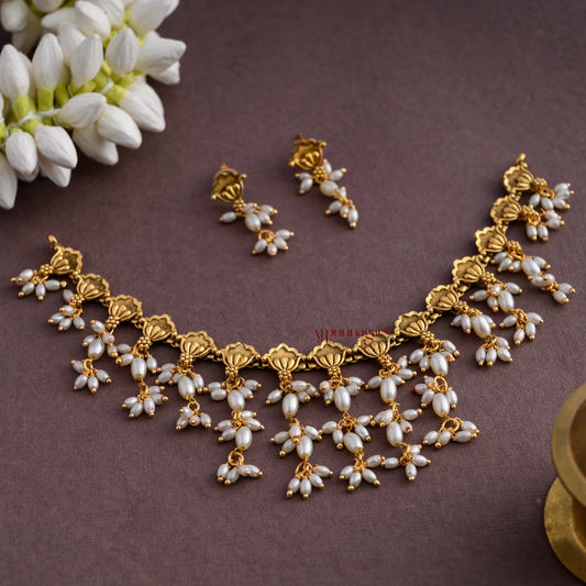 Classy Floral Rice Pearl Guttupusalu Necklace