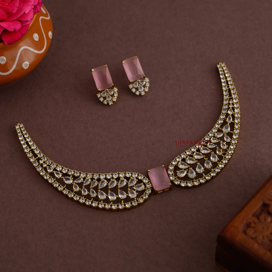 Dazzling AD Necklace - Baby Pink
