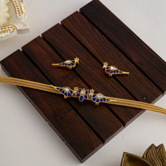 Lotus With Bird Kundan Jadau Necklace - Blue