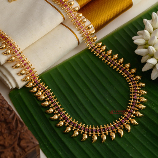 Traditional style kemp stone Handmade Attigai Necklace - Maroon