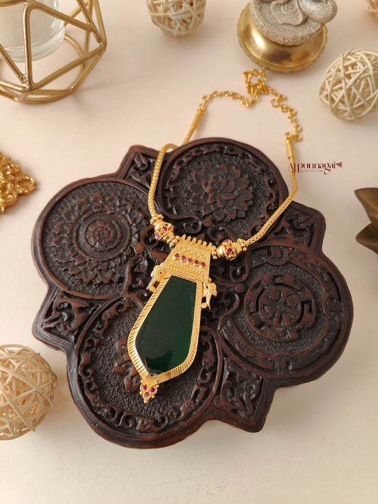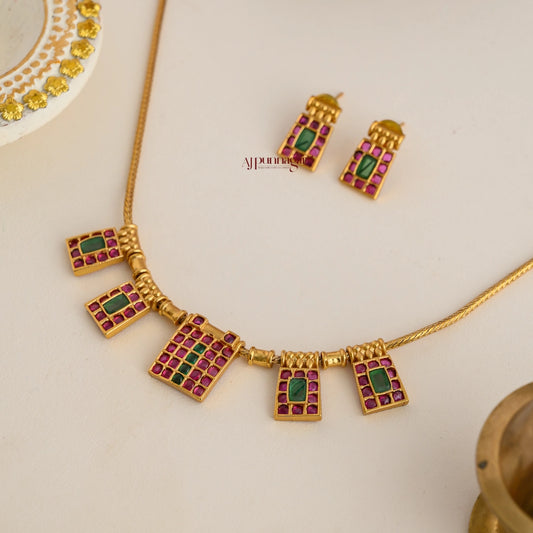 Traditional style kemp stone Handmade Attigai Necklace - Blue