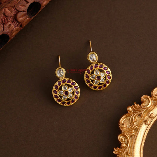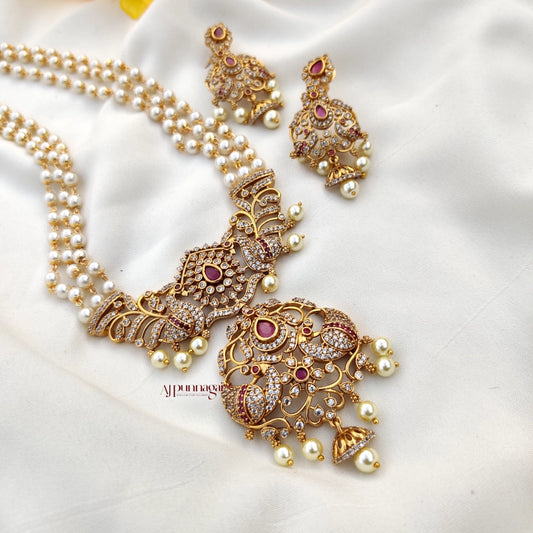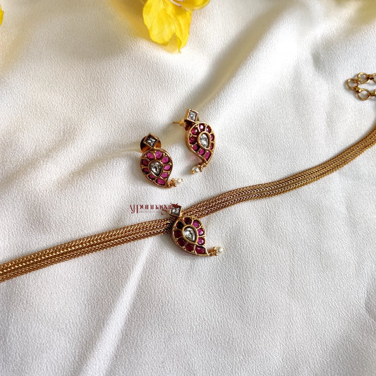 Jhumka Shaped Kundan Jadau Invisible Necklace - Ruby with White