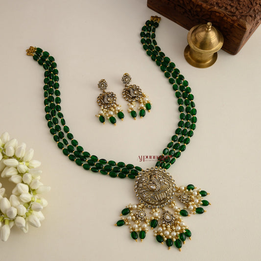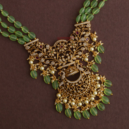 Beautiful Peacock Kundan Jadau Invisible Necklace - Green with White