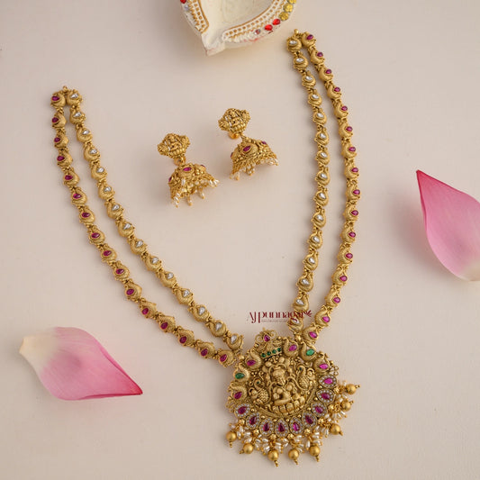 Teardrop Kundan Jadau Invisible Necklace - Pink