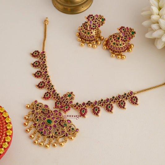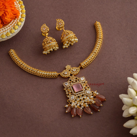Beautiful Peacock Kundan Jadau Invisible Necklace - Pink with White