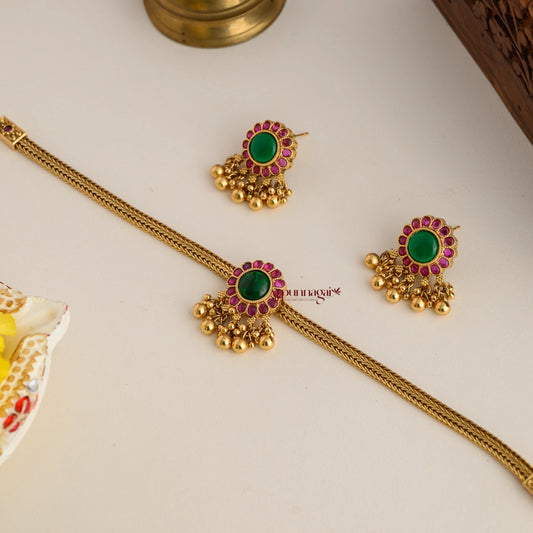 Gold Look Alike Elephant Bridal Green Beaded Haram