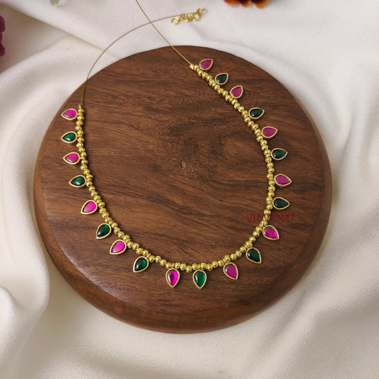 Drop Shaped Kundan Jadau Invisible Necklace - Ruby