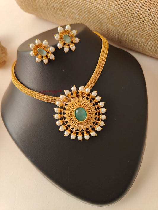 Guttapusalu Necklace with AD Stone - Green