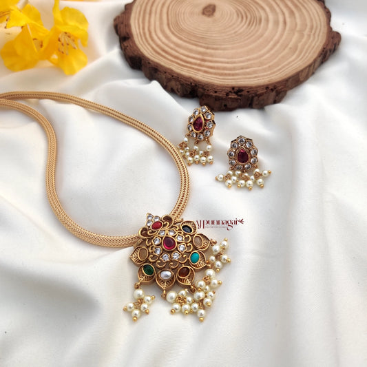 Beautiful Floral Navaratna Pendant Chain
