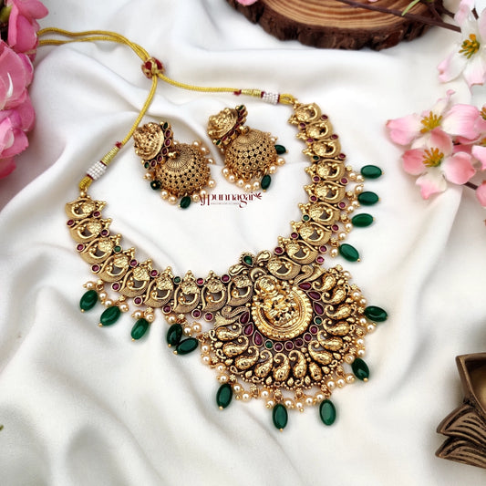 Stunning crafted Lakshmi Motifs Necklace with Green beads