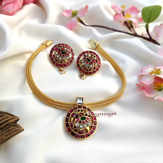 Dazzling Peacock Design AD stone Kundan Jadau Necklace