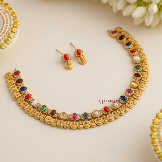 Sold outNavaratna With Lakshmi Coin Necklace